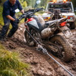 Motorcycle Winch Out carefully recovers bikes or scooters stuck in mud, sand, or uneven terrain without damaging the vehicle.